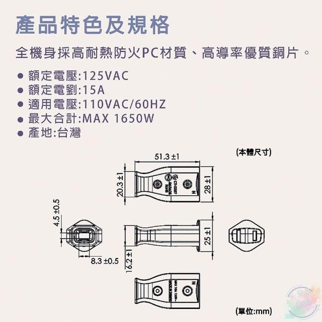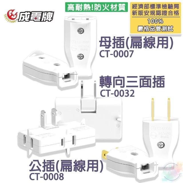 電精靈/成電牌 轉向三面插 / 母插(扁線用) / 公插頭(扁線用)