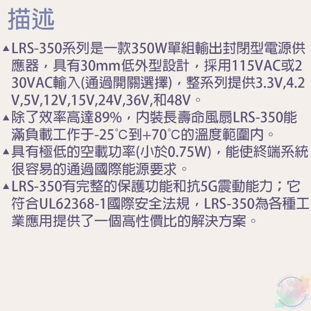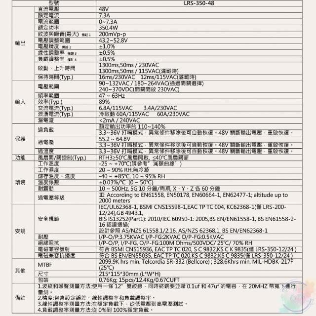 MEAN WELL明緯 350W單組輸出電源供應器 LRS-350-48