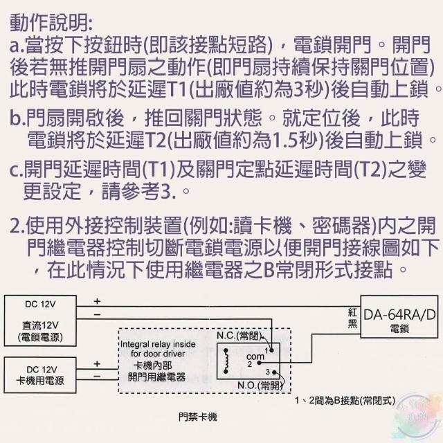 Pegasus鵬驥 DA-64RA/D智慧型磁簧式陽極鎖-斷電開(可無線遙控)(不含變壓器) 門禁管制