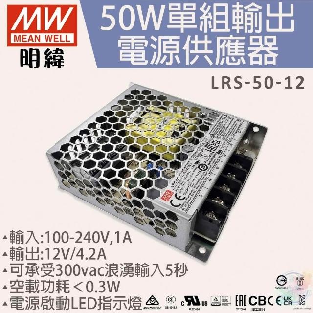 MEAN WELL明緯 50W單組輸出電源供應器12V/4.2A LRS-50-12