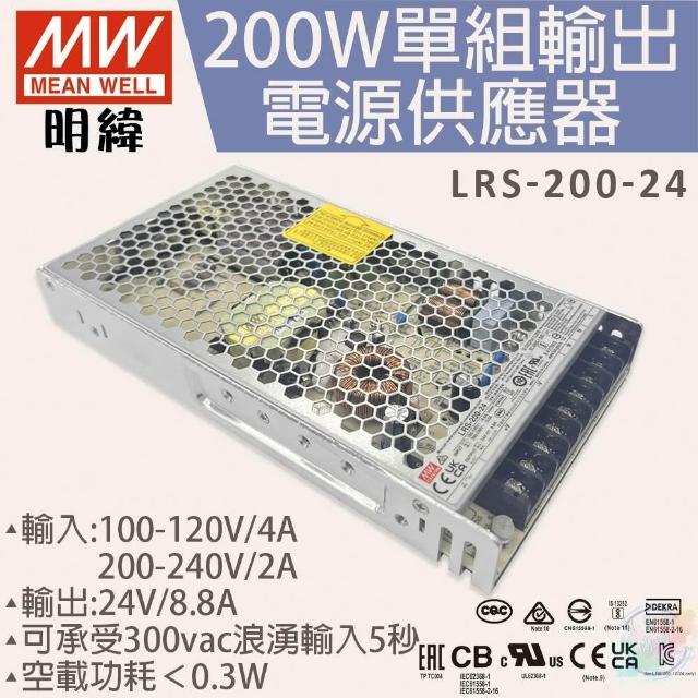 MEAN WELL明緯 200W單組輸出電源供應器24V/8.8A LRS-200-24