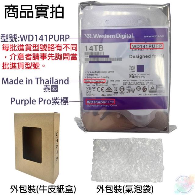 WD 威騰Purple PRO【紫標】14TB 3.5吋監控碟/儲存裝置(5年保固)(原廠公司貨)