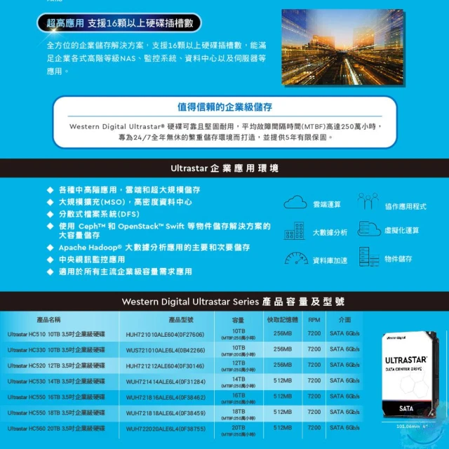 WD 威騰Ultrastar 10TB 3.5吋 企業級硬碟(5年保固)