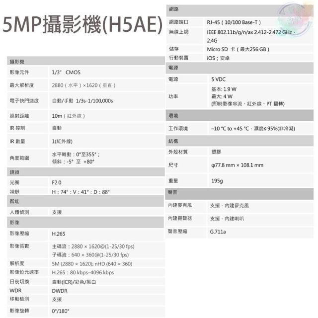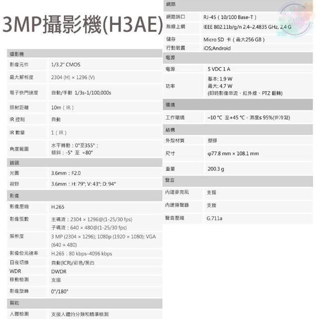 3MP/5MP 室內定焦Wi-Fi網路智能攝影機3.6mm