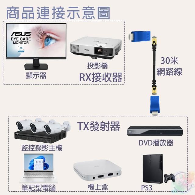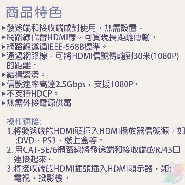 1080P RJ45(cat-5e/6)網路線轉HDMI- 30米延長器