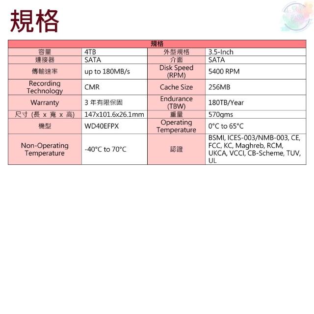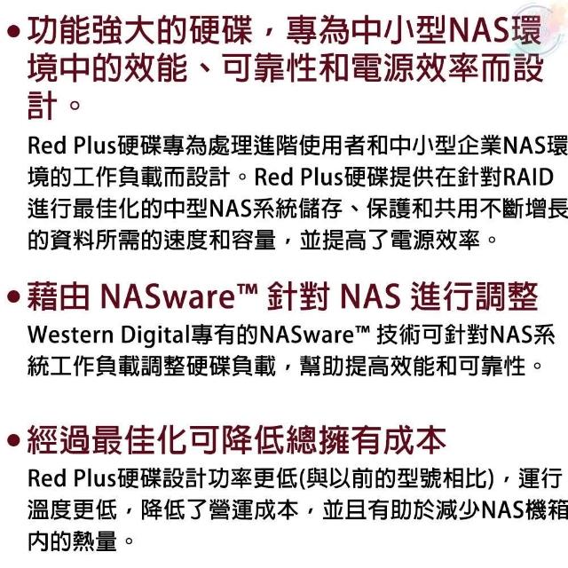 WD 威騰Red Plus 4TB NAS 硬碟/3.5吋儲存裝置/硬碟HDD(3年保固)(原廠公司貨)