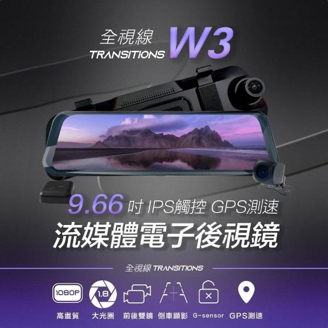 全視線W3 2K高畫質9.66吋IPS觸控GPS測速預警 WIFI流媒體電子後視鏡 行車記錄器 贈32G記憶卡