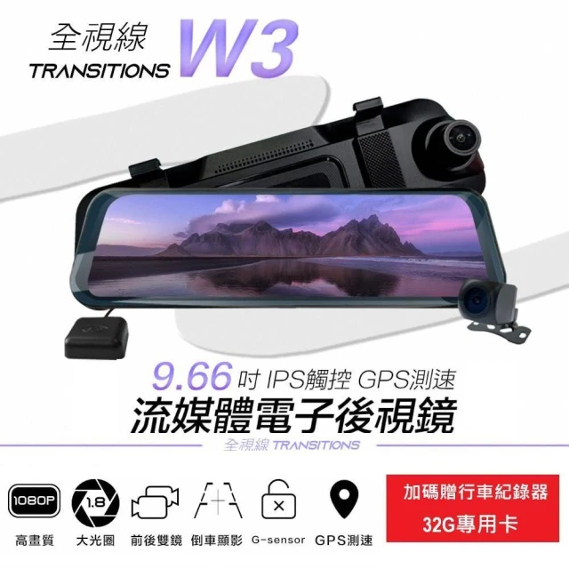 全視線W3 2K高畫質9.66吋IPS觸控GPS測速預警 WIFI流媒體電子後視鏡 行車記錄器 贈32G記憶卡
