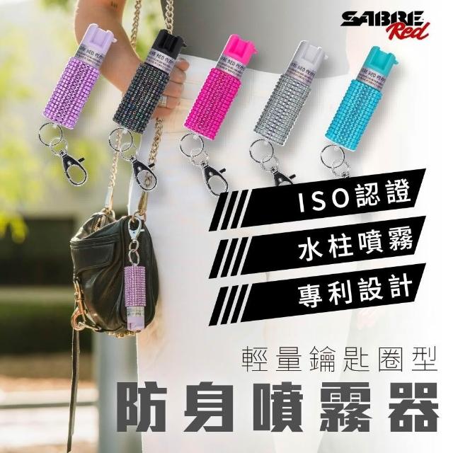SABRE 沙豹防身噴霧 輕量鑰匙圈型-水鑽(薰衣草粉/迷幻黑/未來白/活力粉紅/薄荷青)