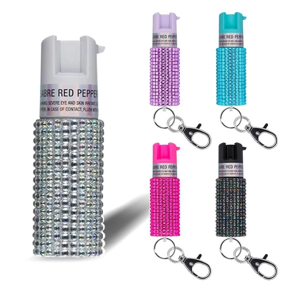 SABRE 沙豹防身噴霧 輕量鑰匙圈型-水鑽(薰衣草粉/迷幻黑/未來白/活力粉紅/薄荷青)