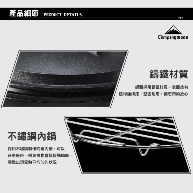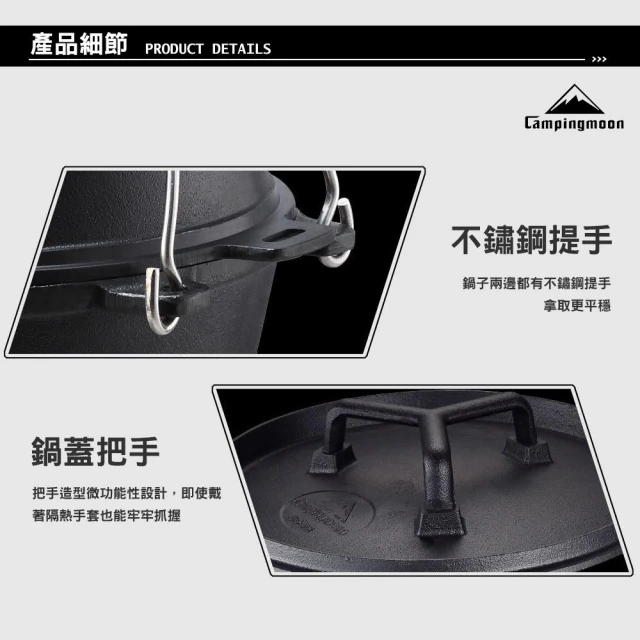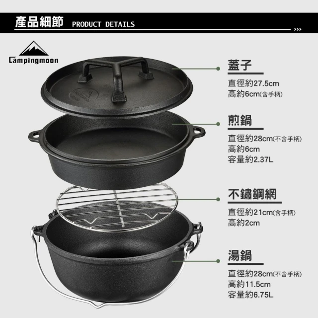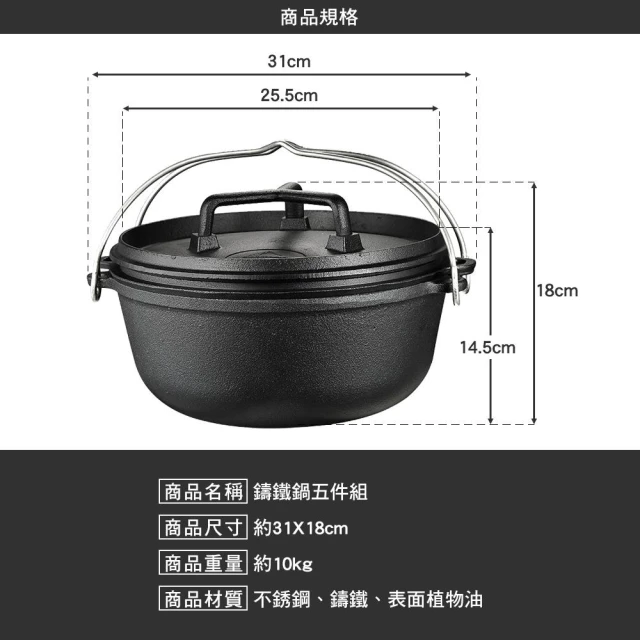 Campingmoon 柯曼鑄鐵鍋五件組 DO-28鑄鐵鍋 荷蘭鍋 鍋子 露營野炊 露營用品 逐露天下