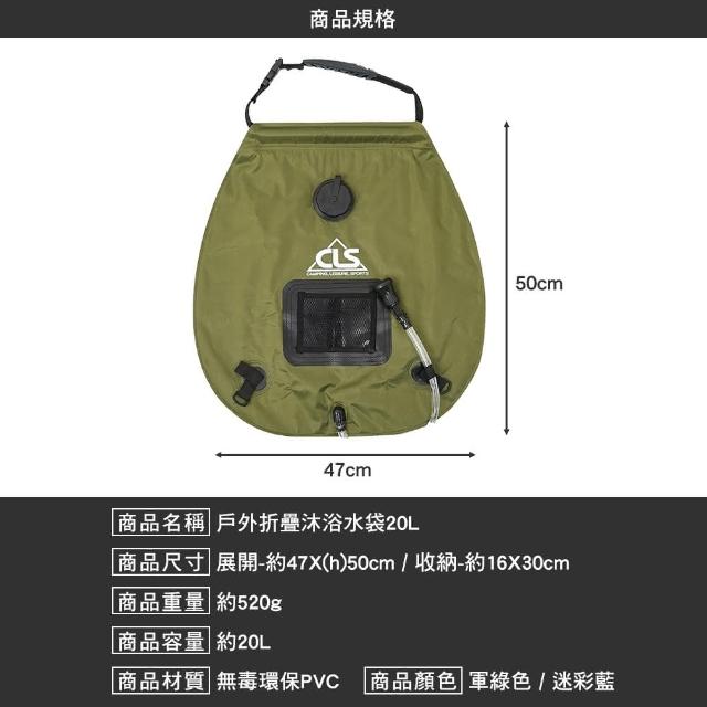 CLS戶外折疊沐浴水袋 20L沐浴袋 水袋 摺疊 露營野炊 露營用品 露營 逐露天下
