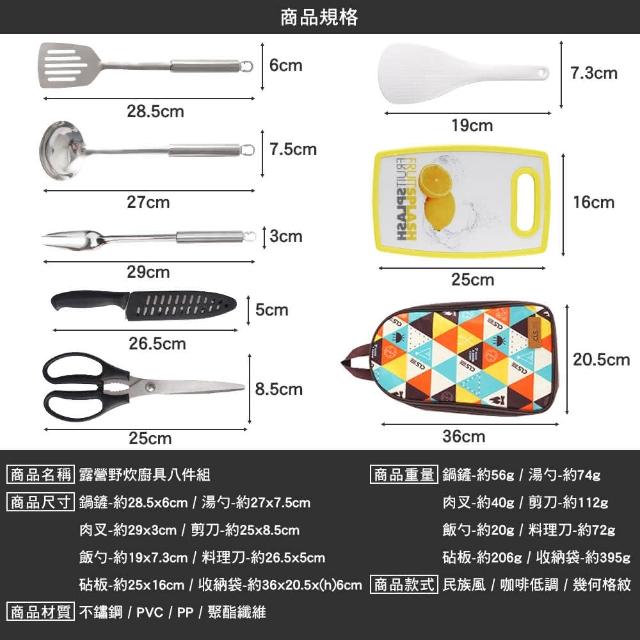CLS露營野炊廚具八件組不鏽鋼廚具 廚具 露營廚具 露營野炊 露營用品 逐露天下