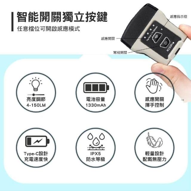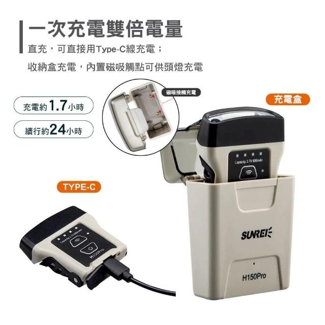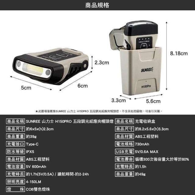 SUNREE 山力士 H150PRO 五段調光感應夾帽頭燈 鋰電池款 探照燈 露營燈 露營