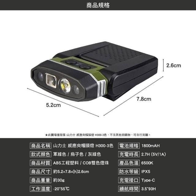 山力士 感應夾帽頭燈 H300 照明 夜釣燈 戶外 露營