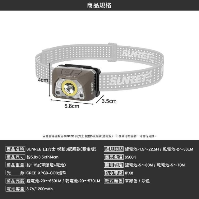 山力士 SUNREE 悅動S感應款 雙電版 頭燈 照明燈 隨身燈 手電筒 露營