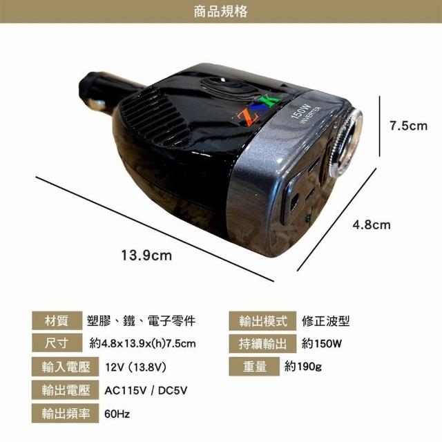 Juz cool 艾比酷艾比酷 電源轉換器 KV-150W 逆變器 車用 電源插頭 露營逐露天下