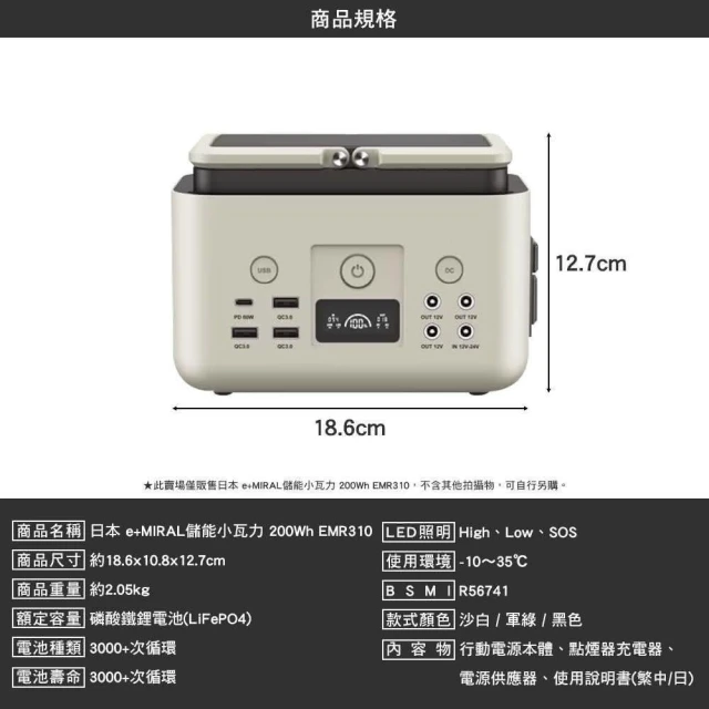 emirai日本 儲能小瓦力 200Wh EMR310戶外電源 充電器 行動電源 露營 逐露天下