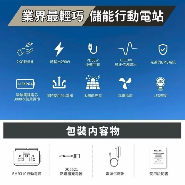 emirai日本 儲能小瓦力 200Wh EMR310戶外電源 充電器 行動電源 露營 逐露天下