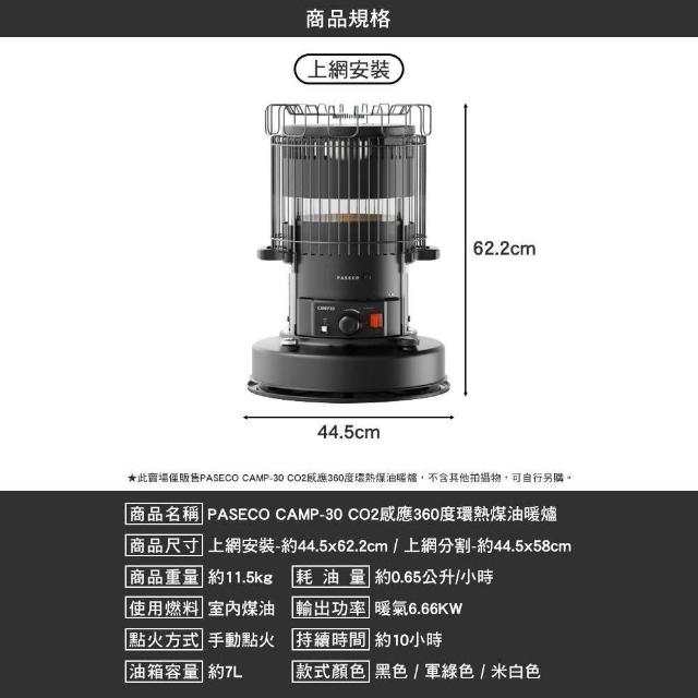 PASECO CAMP-30 CO2感應360度環熱煤油暖爐 暖爐 冬季 保暖 露營 逐露天下