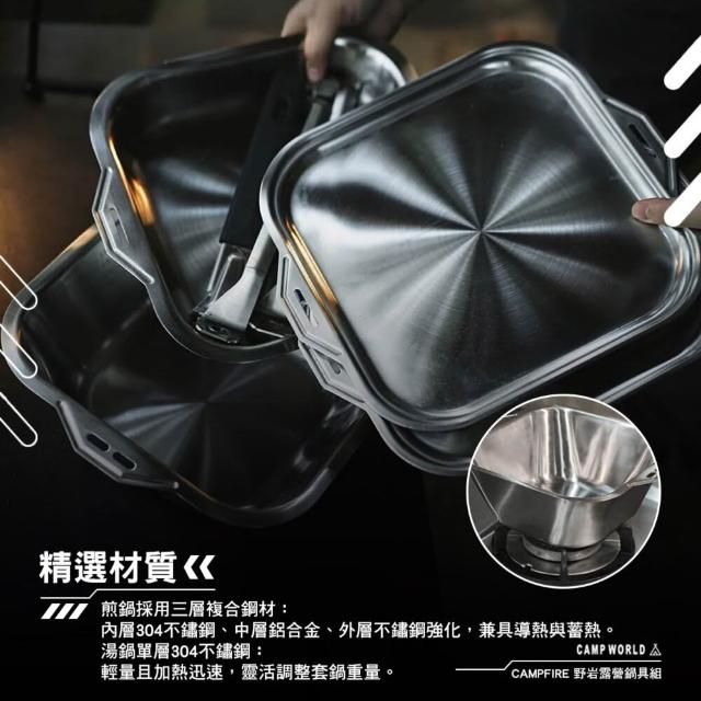 CAMPFIRE野岩露營鍋具組 露營鍋具 戶外鍋具 不鏽鋼鍋具 野營鍋 鍋具 套鍋 露營 逐露天下