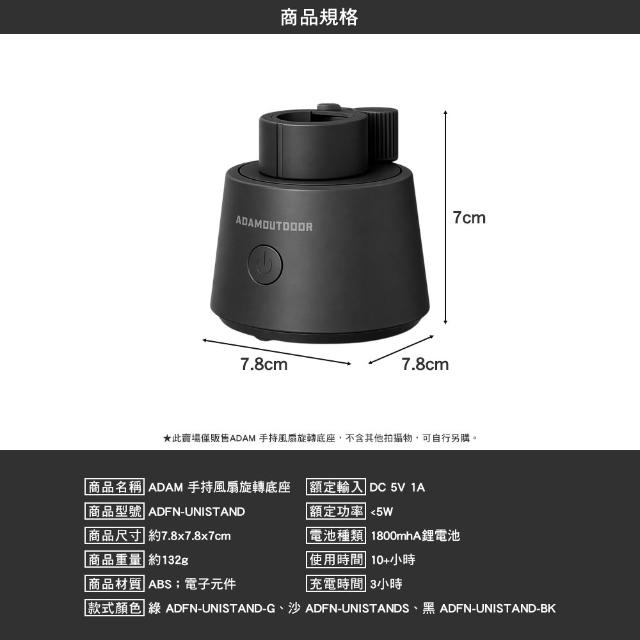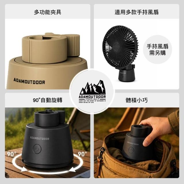 ADAMOUTDOOR手持風扇旋轉底座 手持風扇 風扇底座 風扇支架 90度自動旋轉 10小時續航 逐露天下