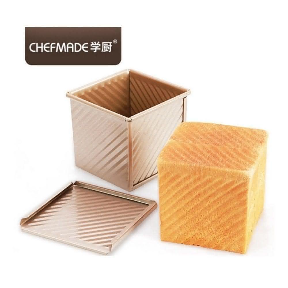 Chefmade 學廚學廚WK9318-立方有蓋波紋吐司模 金色不沾有蓋吐司模 底部有洞 正方形帶滑蓋麵包模具 土司盒烤箱用