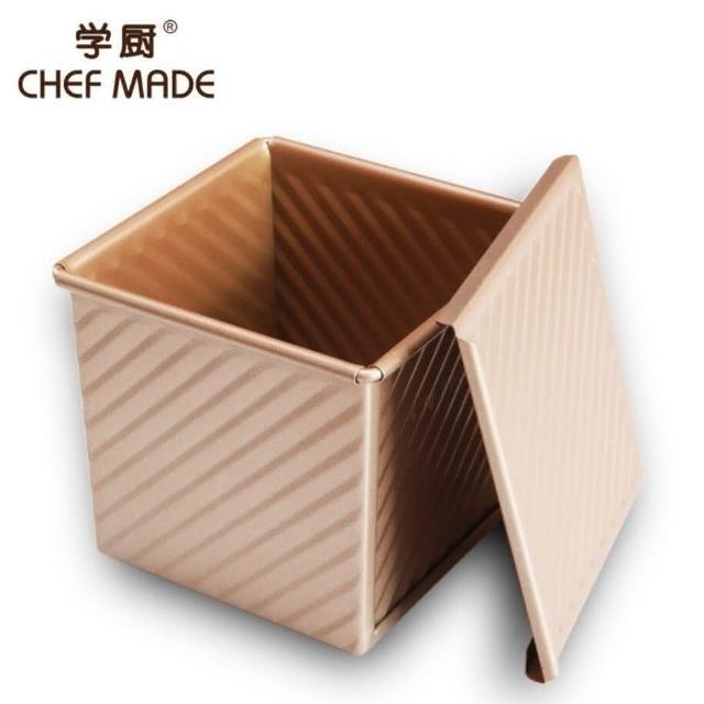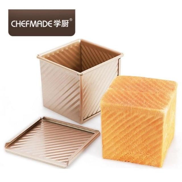 Chefmade 學廚學廚WK9318-立方有蓋波紋吐司模 金色不沾有蓋吐司模 底部有洞 正方形帶滑蓋麵包模具 土司盒烤箱用
