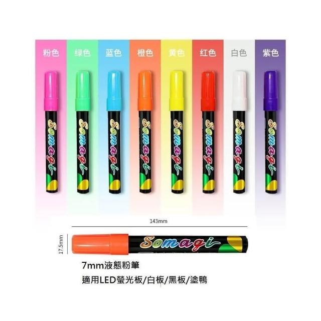 液態粉筆-7mm-8支1套 1套8色 無粉塵 白板筆 燈板螢光筆 電子黑板 螢光筆 玻璃黑板筆
