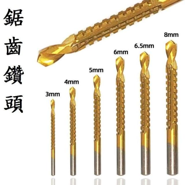 鋸齒鑽頭6支裝 鋸鑽合一 鋸齒麻花鑽鑽尾 鑽孔 擴孔器 拉槽 鐵工木工工具 電鑽頭開孔器