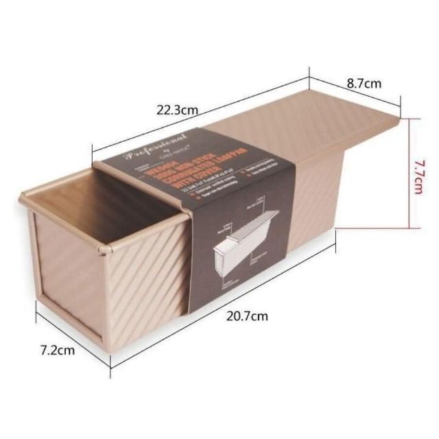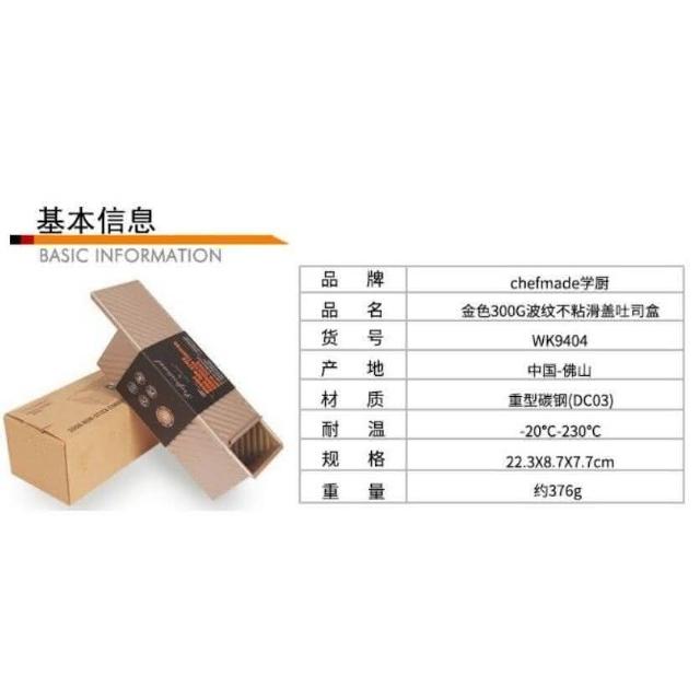 Chefmade 學廚學廚WK9404-有蓋波紋吐司模300g 金色不沾有蓋吐司模 底部有洞 正方形帶滑蓋麵包模具 土司盒烤箱用