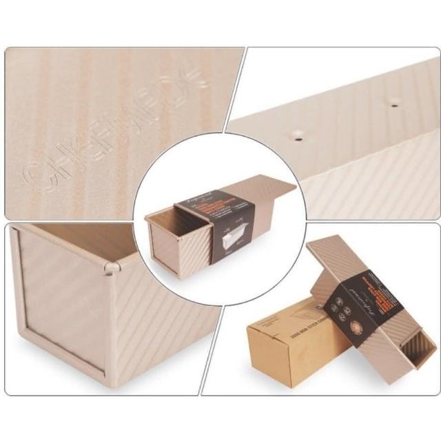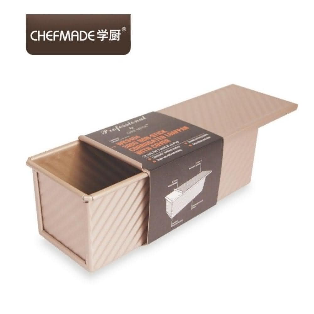 Chefmade 學廚學廚WK9404-有蓋波紋吐司模300g 金色不沾有蓋吐司模 底部有洞 正方形帶滑蓋麵包模具 土司盒烤箱用