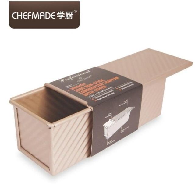 Chefmade 學廚學廚WK9404-有蓋波紋吐司模300g 金色不沾有蓋吐司模 底部有洞 正方形帶滑蓋麵包模具 土司盒烤箱用