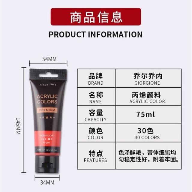 喬爾喬內壓克力顏料-75ml 喬爾喬內 丙稀顏料 流動畫 無毒廣告顏料 DIY 油畫顏料 流體畫 丙烯酸顏料