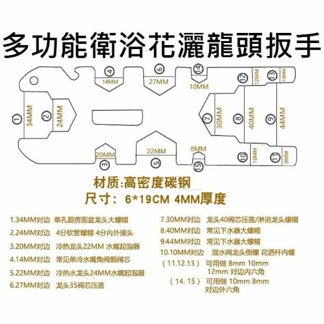 衛浴扳手 14種功能 多功能 水龍頭扳手 水龍頭工具 水龍頭專用工具 衛浴工具 水龍頭安裝扳手 水電工具 衛浴扳手