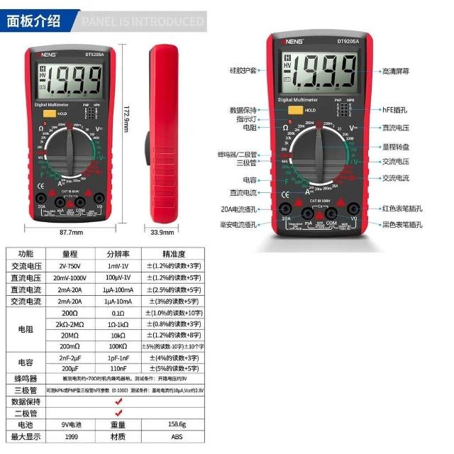 萬用電表DT9205A 保固半年 ANENG 大螢幕 電表 電錶 三用電表 三用電錶 萬用錶 萬用表