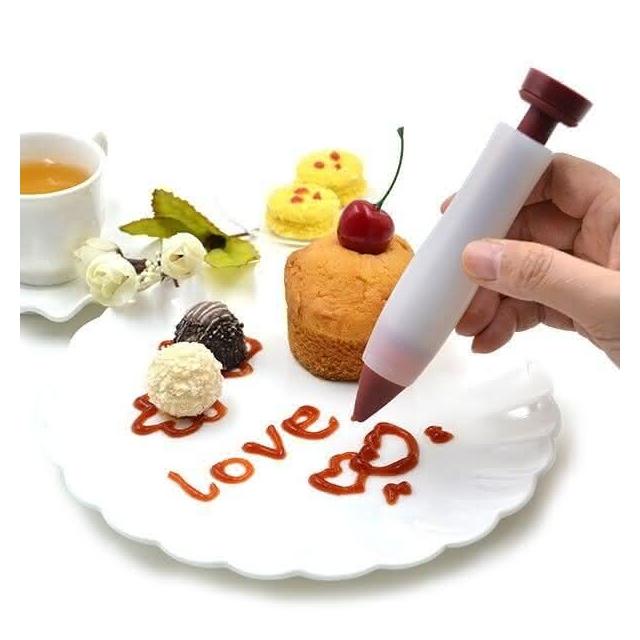 裱花筆 配4頭 針筒型軟矽膠拉花筆 咖啡雕花用擠醬瓶巧克力醬畫筆 巧克力擠醬筆 巧克力筆