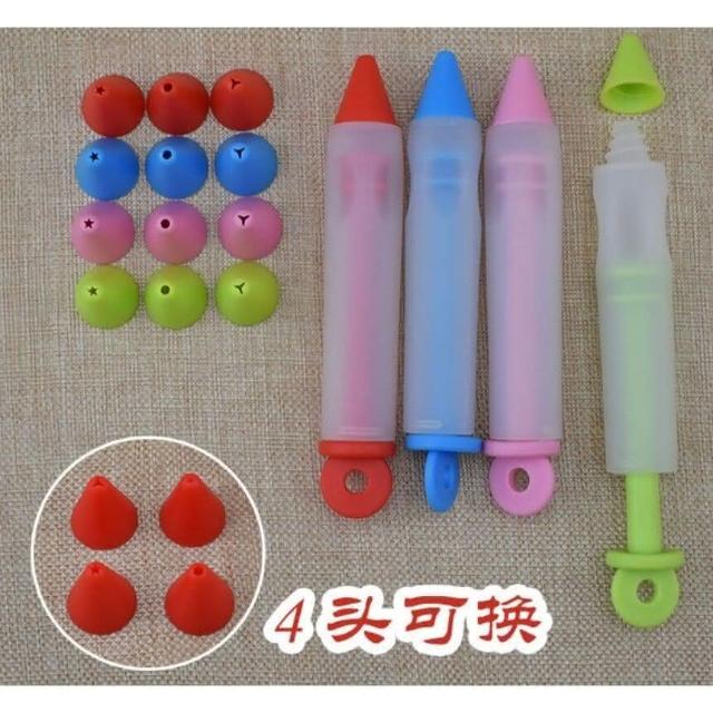 裱花筆 配4頭 針筒型軟矽膠拉花筆 咖啡雕花用擠醬瓶巧克力醬畫筆 巧克力擠醬筆 巧克力筆