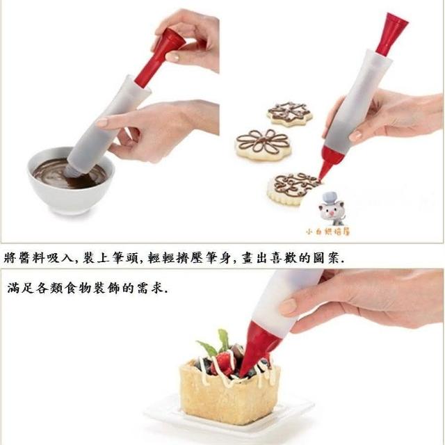 裱花筆 配4頭 針筒型軟矽膠拉花筆 咖啡雕花用擠醬瓶巧克力醬畫筆 巧克力擠醬筆 巧克力筆