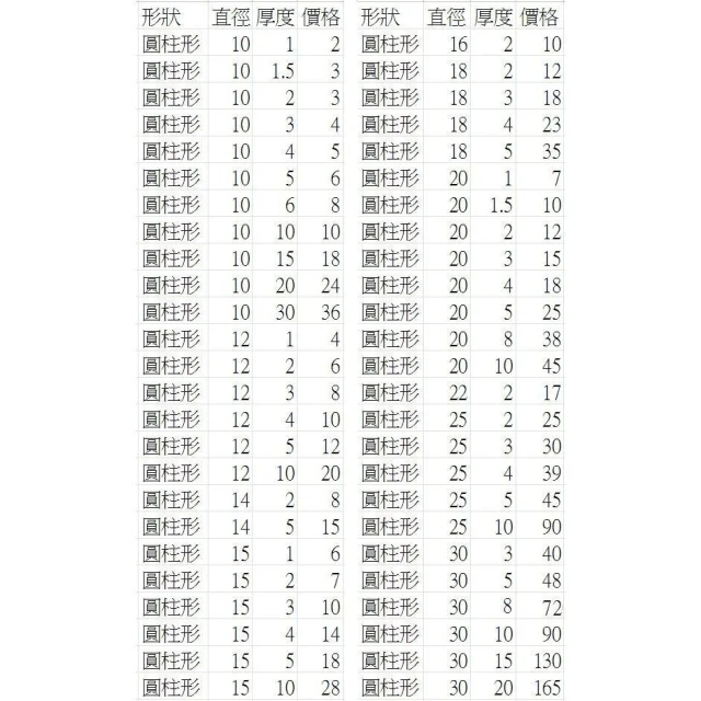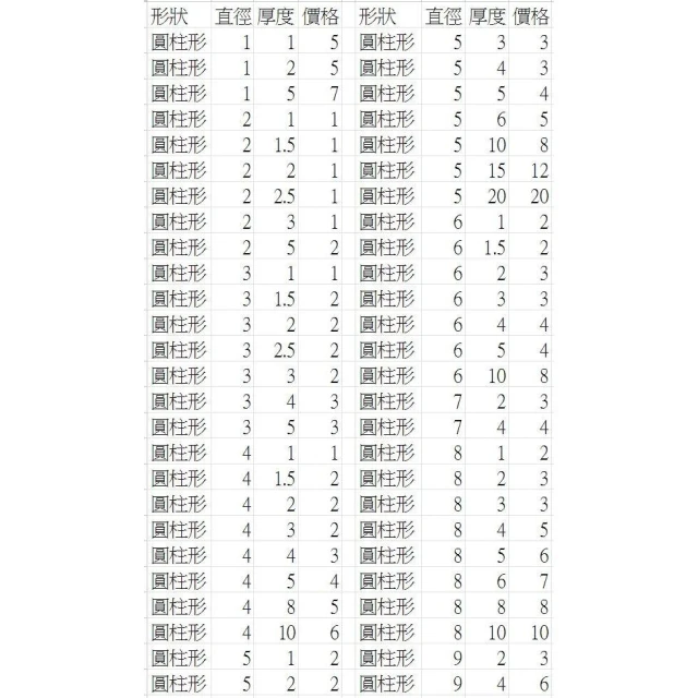 強力磁鐵圓形D20 直徑20mm 厚度1 10mm 釹鐵硼 磁鐵 磁鉄 磁石 圓柱形 N35