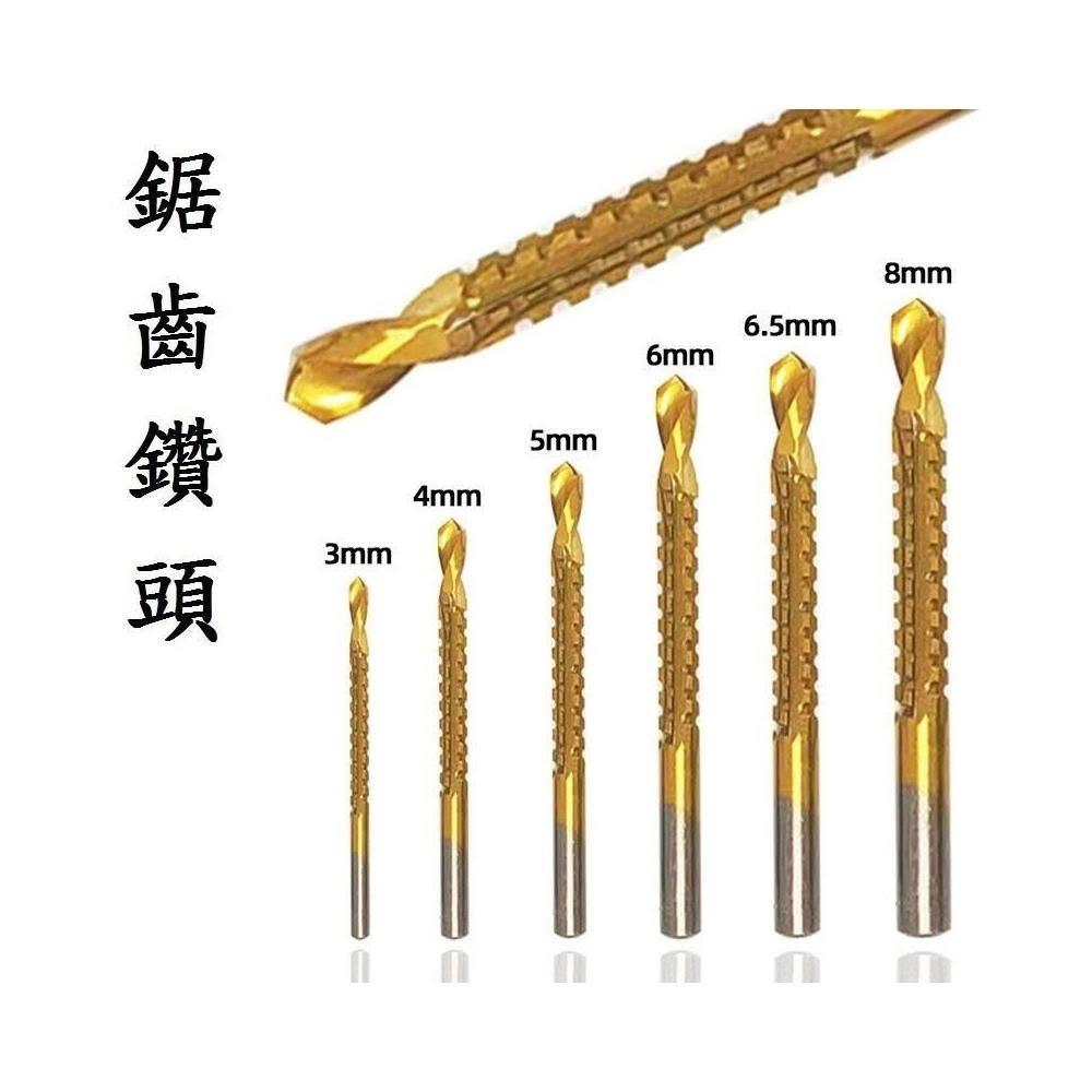 鋸齒鑽頭6支裝 鋸鑽合一 鋸齒麻花鑽鑽尾 鑽孔 擴孔器 拉槽 鐵工木工工具 電鑽頭開孔器