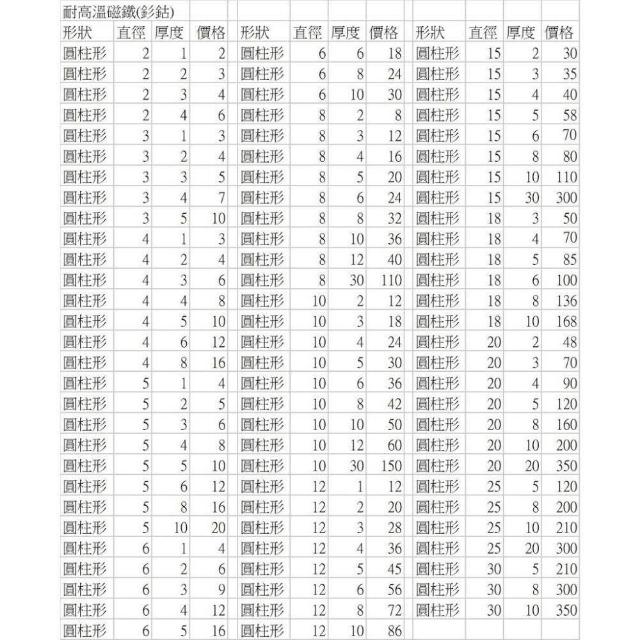 耐高溫強力磁鐵-圓形 D15~30 釤鈷 釹鐵硼 磁鐵 磁鉄 磁石 圓柱形 N35 耐高溫磁鐵