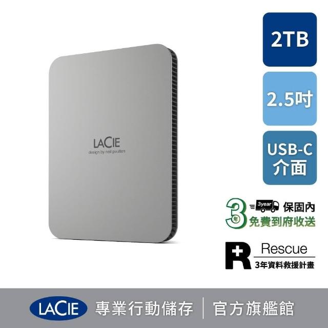 LaCie 萊斯Mobile Drive v2 USB-C 2TB HDD 行動硬碟 - 月光銀(行動硬碟)