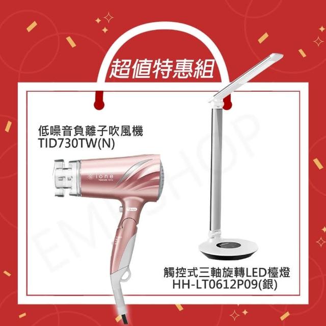 Panasonic 國際牌超值組合優惠 觸控式LED檯燈 HH-LT0612P09銀+ TESCOM 低噪音負離子吹風機 TID730TW玫瑰金