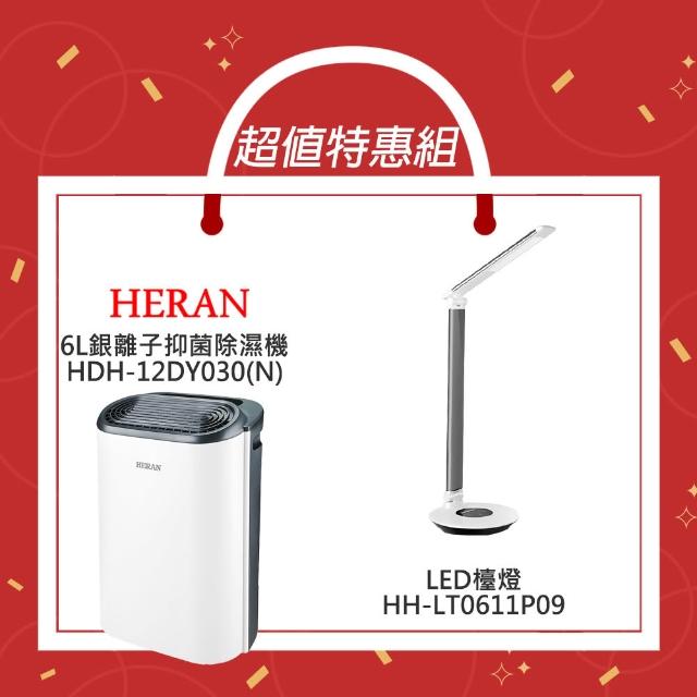 HERAN 禾聯超值組合優惠 6L銀離子抑菌除濕機 HDH-12DY030(N)+ 國際牌觸控式LED檯燈 HH-LT0611P09灰