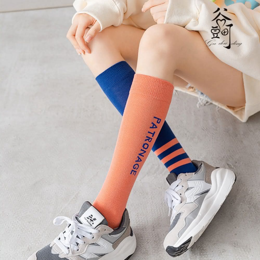 谷豆町 W01 AB襪健身瑜伽運動壓力襪跑步長筒襪彈力跳小腿襪百搭長筒襪襪子健身襪膝蓋襪中筒襪純棉襪減壓襪學生襪流行襪(AB中筒襪)