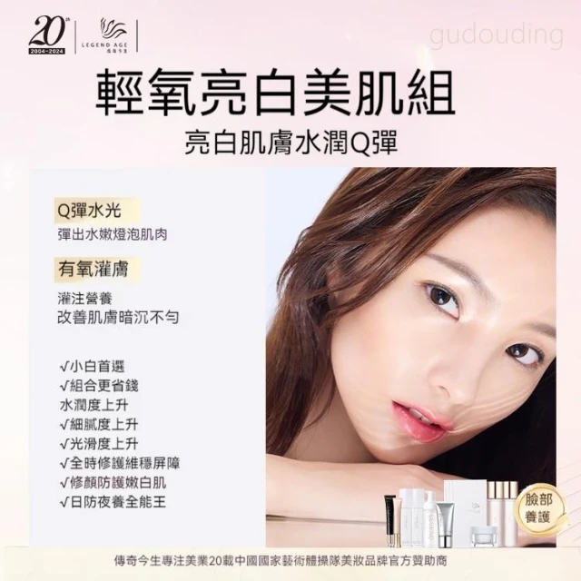 傳奇今生傳奇今生輕氧亮白美肌套組LEGEND AGE傳奇今生護膚品 保濕抗老防曬美白修護滋養深層保濕抗皺美白全效護膚輕透防曬套裝組