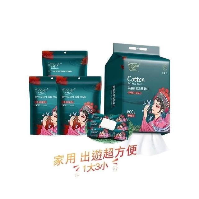 谷豆町洗臉巾家庭裝1包(160抽)+旅行用3包(60顆獨立包裝)一次性懸掛式抽取式洗臉巾日常擦拭清潔紙巾免洗