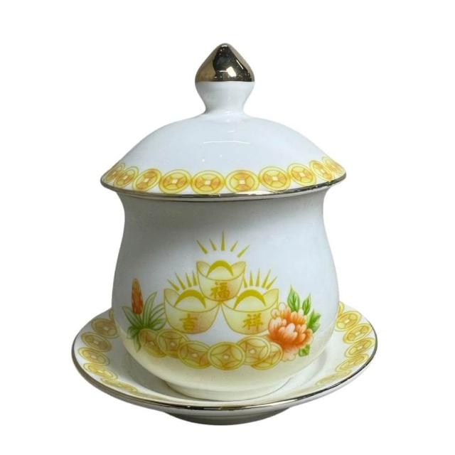 永羣沉香 陶瓷供杯 金元寶 精緻骨瓷 彩繪 單杯 宗教用品 佛具