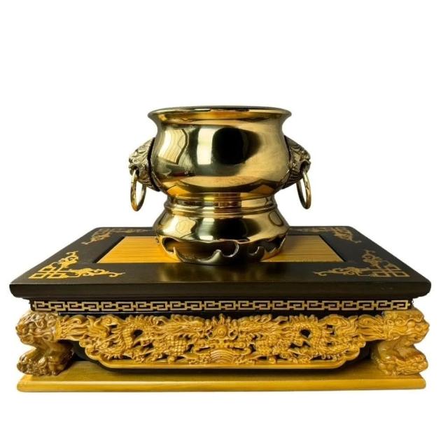 永羣沉香 銅淨爐 銅爐 雙獅耳 高質感 金色 純銅